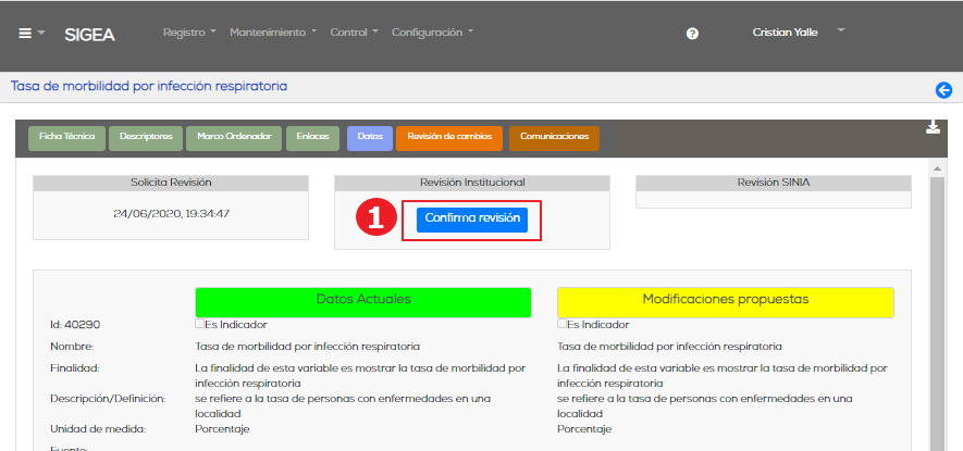 2. Confirmar revisión de los datos ingresados en el indicador o variable