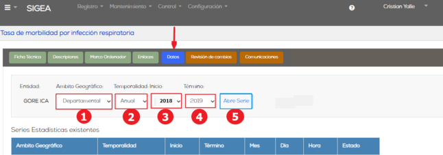 (5) - Clic sobre el botón "Abre Serie". para generar los campos para el ingreso de datos.