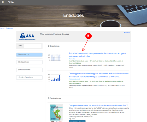El sistema despliega la lista de variables / indicadores por sección de la entidad seleccionada(5).